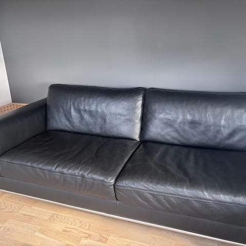 Jeg selger min svarte sofa. 1000 jeg har fått meg ny