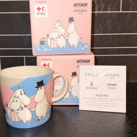 Arabia Moomin krus med dekorasjon inspirert av Mummitrollet. Kruset er laget av keramikk og egnet for daglig bruk.