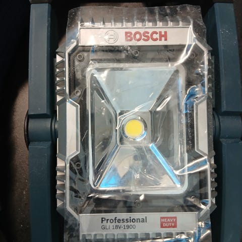 Kraftig og solid LED-arbeidslampe kompatibel med alle Blå Bosch 18V-batterier.