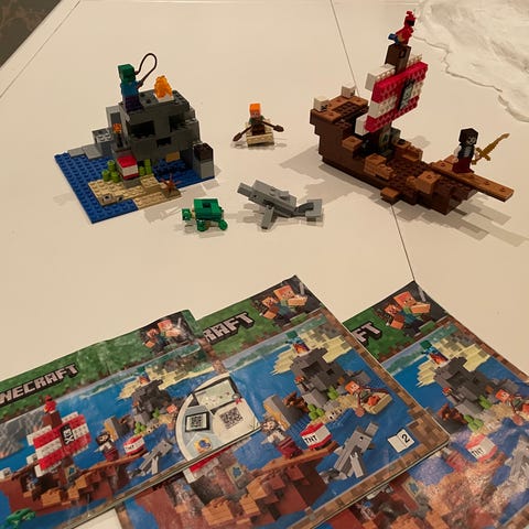 Selger ny LEGO Minecraft 21259 På tokt med sjørøverskip / The Pirate Ship Voyage.