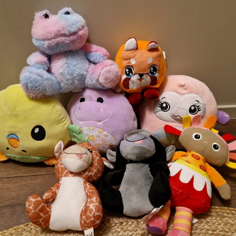 Isbjørn, hamster og rosa bamse med enhjørning horn.