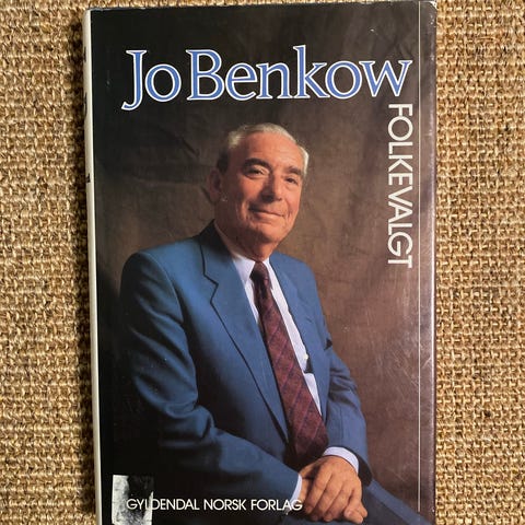 Jo Benkow Biografi bok med portrettbilde på omslaget. Inneholder informasjon om Jo Benkows liv og karriere.