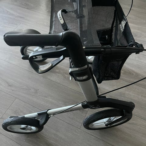 Pent brukt rullator selges. En lett, solid og brukervennlig rullator som både kan brukes inne og ute. Lett å legge sammen,gir høy sikkerhet og komfort mens du går med kjøre- og parkeringsbremser på begge håndtakene.