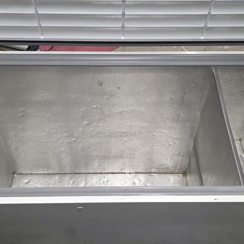 Fryseboks, fungerer bra, ukjent alder, mål 120 cm x 62 cm