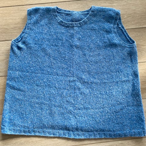 Hjemmestrikket fin brun vest. Str xl, men kan godt brukes til f.eks. xxl, da det er justerbare snorer i sidene