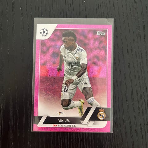Topps fotballkort med motiv av Vini Jr., posisjon forward. Kortet er en del av Dribble King-serien fra UEFA Champions League-samlingen.