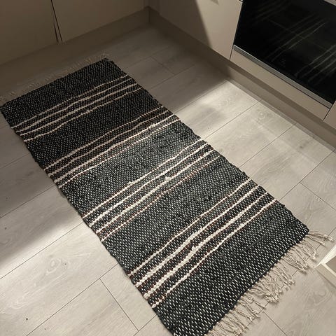 Helt nytt kvalitetsteppe selges. Rommet var mindre, og teppe større enn beregnet. Jeg selger derfor det ene av to, jeg ikke har gulv til, og til godt under tilbudspris!! Det må hentes på Buran, jeg har ikke bil dessverre. Til denne prisen, kan teppe ta taxi til stort sett hele byen, og du vil likevel ikke tape penger på det. Det er et selvstendig, dessverre ikke flyvende teppe, men tar gjerne taxi alene! Teppe er kjøpt hos Bohus, og du finner annonse der.