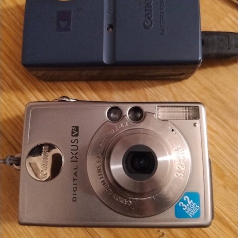 Canon Digital IXUS 60 kompaktkamera i sølvfarge. Kameraet har et kompakt design med innebygd optisk søker og LCD-skjerm for bildeframvisning. Egnet for generell fotografering og enkel bruk.