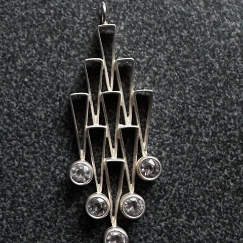 Sort sommerfuglbrosje med heng.