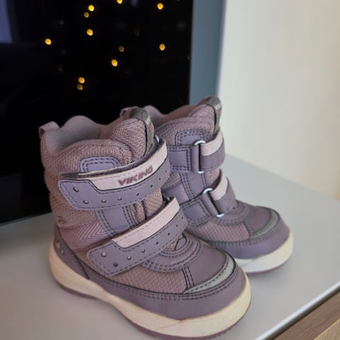 Superfit barnesko i størrelse 20, designet for jente. Skoene har en lilla farge og er laget med materialer som gir komfort og støtte for barnets føtter. Gode og varme og vanntette. Knapt brukt.