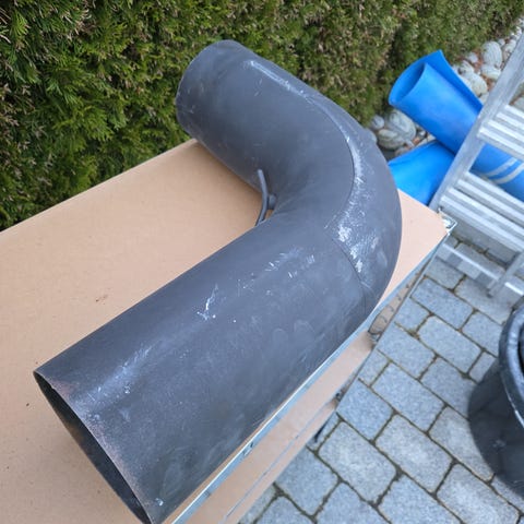 Ukjent merke pipeelementer laget av svart metall. Produktene inkluderer flere deler av ulik størrelse og form. Bruksområde er tilkobling og forlengelse av pipe eller skorstein.