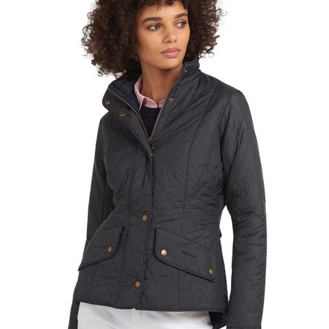 Barbour Andre jakker i bomull for dame, størrelse 40, farge svart. Jakken har flere glidelåslommer og en asymmetrisk glidelås foran. Materialet er slitesterkt bomull med et rutemønster, og jakken har en ståkrage med knappelukking. Passer til hverdagsbruk og gir moderat beskyttelse mot vind.
