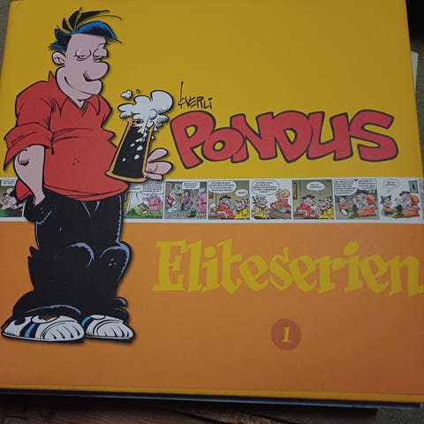 Pondus Eliteserien er en tegneserie bokserie bestående av flere bind. Serien inneholder humoristiske og satiriske historier med fokus på fotballmiljøet. Bokserien er innbundet med fargerike omslag og illustrasjoner.