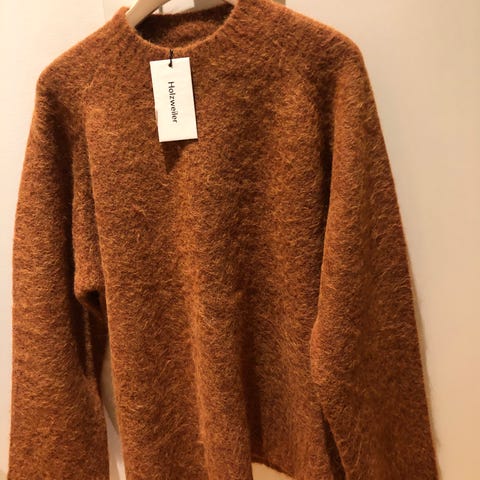 Genser i ull/mohair, lysegul farge, str. M (stor i størrelsen)