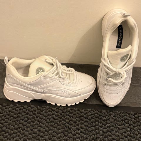 Läst Sneakers joggesko i svart og hvit farge, størrelse 40. Skoene har en tykk hvit såle og svart overdel med hvite lisser. Egnet for hverdagsbruk og fritid. Kun brukt få ganger.
