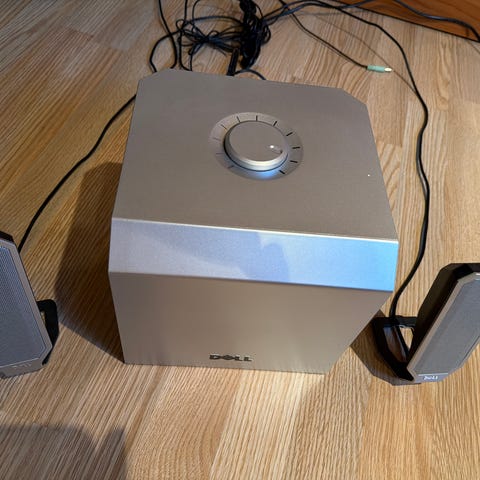 Settet ble kjøpt for ca. 3 år siden, men har blitt svært lite brukt og fremstår som nytt. Dette er minimalistiske høyttalere med fantastisk lydkvalitet, spesielt tilpasset gaming og musikk ved skrivebordet.