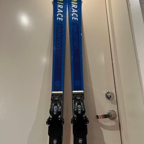 Som ny, kun brukt to ganger. Lengde 184cm Mål 140-116-127. Binding montert etter 327mm skall