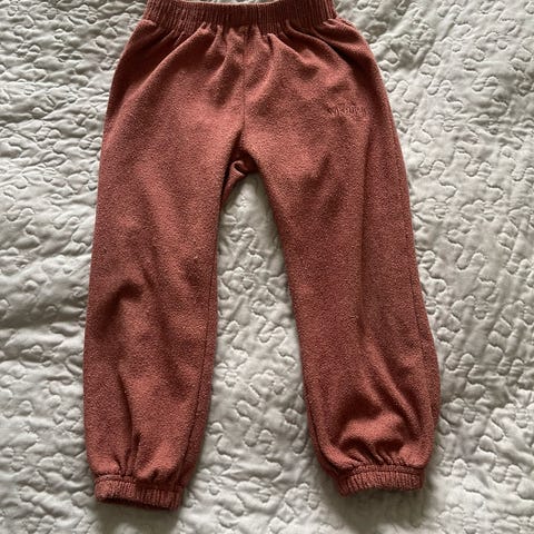 Lilla bukse med rosa prikker fra H&M. 95% bomull og 5% elastan.