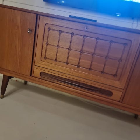 Møbelet er svært solid og laget i massivt treverk, og er derfor veldig tungt – det anbefales å være minst to personer ved henting. Trenger også stramme skruene på dørene.