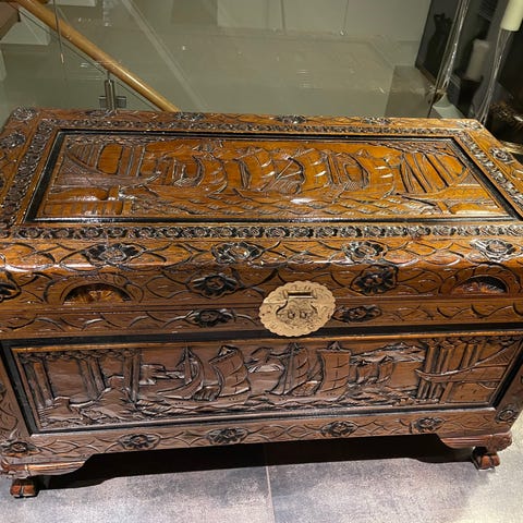 Gammel skjenk som tar seg godt ut i et rustikk interiør.