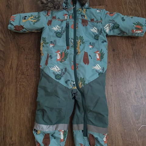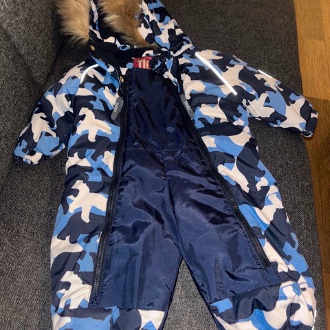 Ubetydelig brukt, og framstår som ny, men knappene til strikkene på bena burde festes litt bedre så man ikke mister noen knapper.