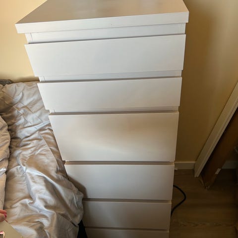 Solid og romslig hvit Malm kommode med 6 skuffer (4 store og 2 små) fra Ikea selges.