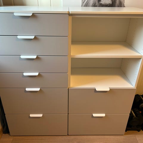 Kommoden er stødig og tight. Alle skuffene fungerer og er lette å trekke ut og skyve inn. Mangler to pyntelist men ikke noe å si for bruken eller kommoden
