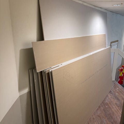 Materialet er gips, som gir god brannmotstand og lydisolasjon.