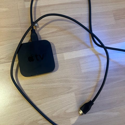 Apple TV (3rd gen) model A1469. En digital mediespiller for strømmetjenester og apper, kobles til TV via HDMI. Leveres med fjernkontroll og strømkabel.