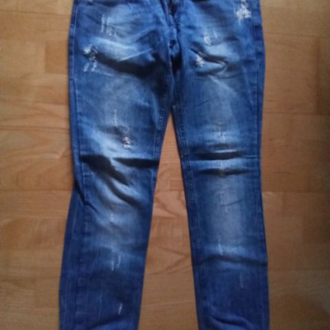 Selger et par stilige jeans i klassisk blå denim. Jeansen er pent brukt. Buksen har en tidløs passform, perfekt både til hverdags og pent bruk.