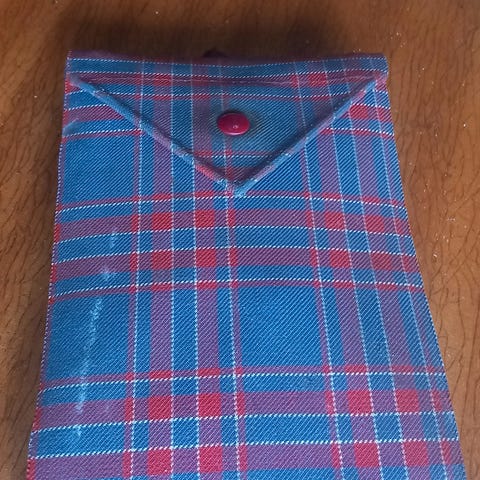 Mustad tøy og klistremerke.