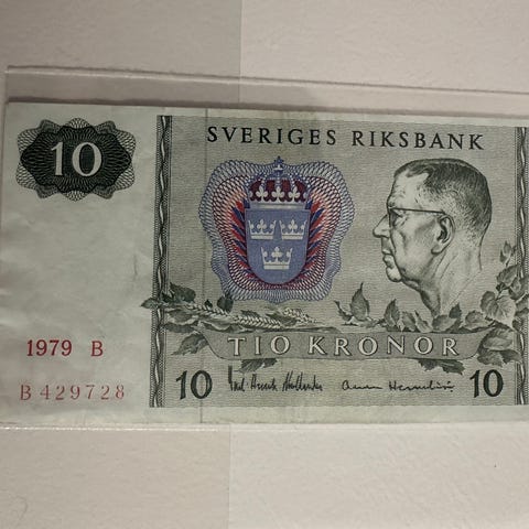 Usirkulert 10 krone seddel fra Sverige + Frimerke 1.50