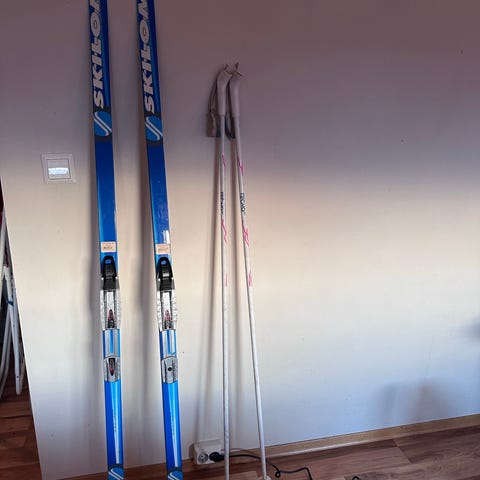 Pent brukte langrennsko for barn selges, skoene fremstår som nesten ny.