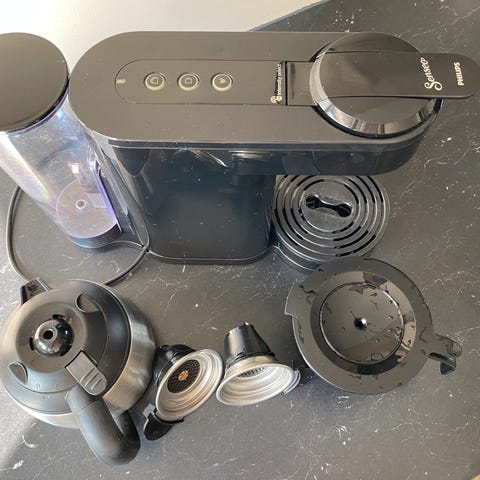 Philips kaffemaskin i svart farge. Maskinen har et moderne design med enkel betjening via touchknapper på fronten. Inkluderer beholder for vann og utstyr for å velge 1 eller to kopper. Kaffeputer kjøpt i dagligvare benyttes for valgri enkel varm drikke.