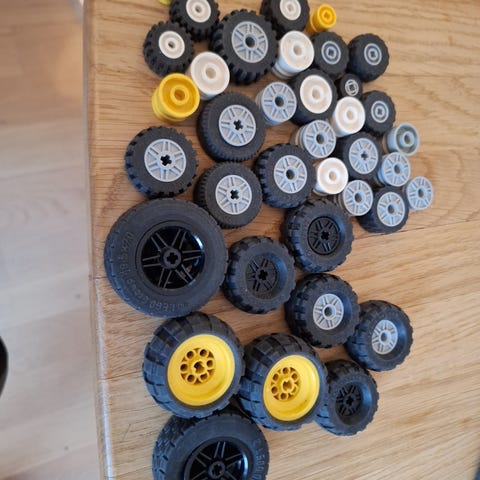 12 stk lego tecnic hjul kjøp bare det du trenger, små bestillinger kan sendes som brev. Små hjul 5kr stk. Store hjul 20kr stk.