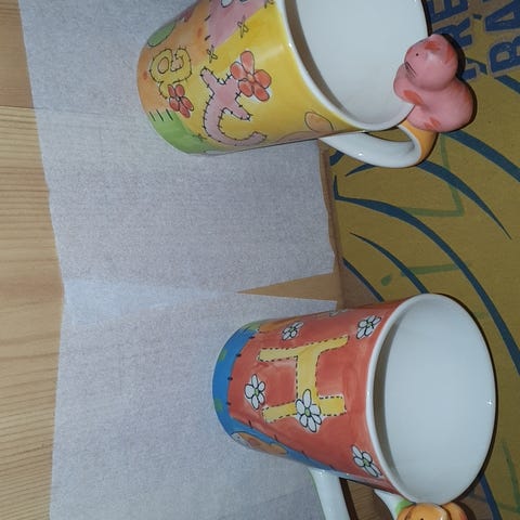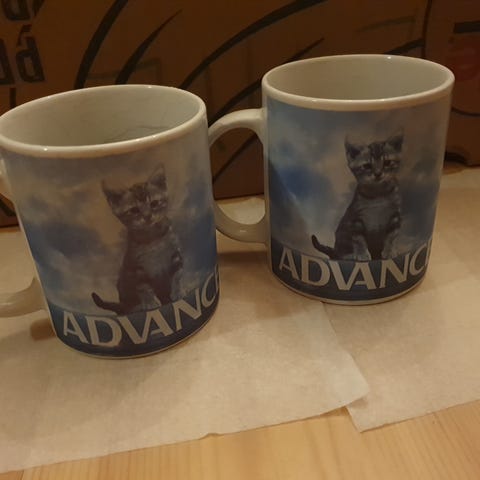 Kopper med kattemotiv. Selges for 45 per kopp eller 80 samlet