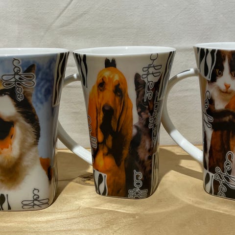 Kopper med kattemotiv. Selges for 50