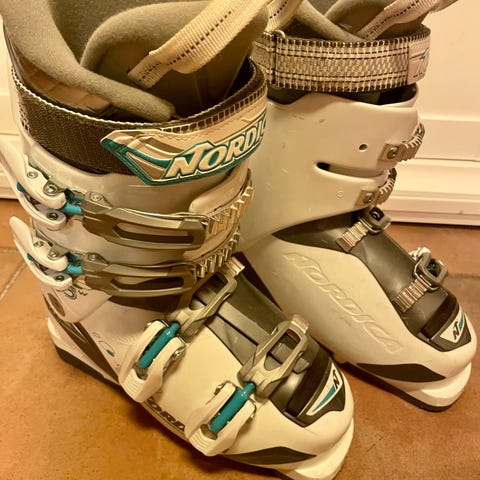 Pent brukte slalomsko til barn, tilsvarer ca str. 27. Skiskoene har justerbare spenner og en solid såle med godt grep. Egnet for alpinski og gir støtte og komfort under bruk.