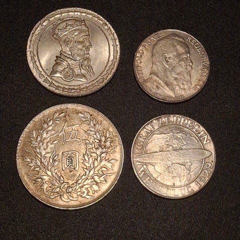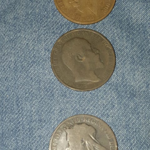 Myntene på bildet er (8stk) 1, pluss 1stk 5 og 1 stk.10 Reichspfennig-mynter fra Nazi-Tyskland, preget i 1941 og 1940.