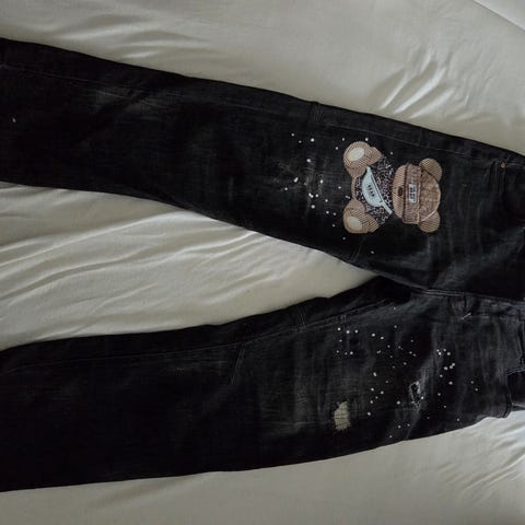 Straight high waist Jeans med strass på lomma, str 48. Ny med lapp på! Selges for 150,- ( Nypris 499,-)