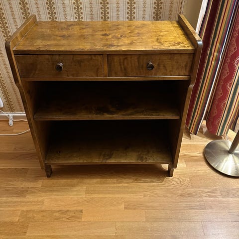 Selger en kommode hvor skrog og skuffefronter er massiv eik, skuffene i seg selv er nok noe presset materiale. Pen å se på. Skuffene kunne ha glidd litt bedre, men det er mulig dette kan smøres opp. Selges derfor billig. Må hentes og bæres 😊
