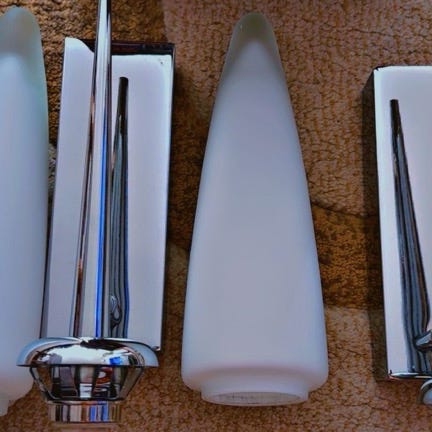 Vegglamper i klart glass og blank krom overflate på metall. Bryter med dimmer på ledning. Prisen gjelder for begge