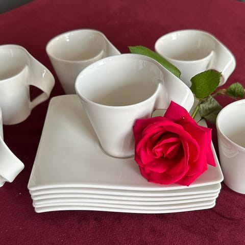 10 kaffekopper med skål selges 600kr. Ikke synlig brukt. Det er de små kaffekoppene.