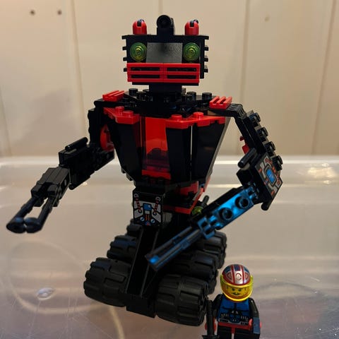 Nesten komplett. Mangler 1 blå 73983 Hinge Plate som er erstattet med sort inntil videre (se bilde 26) Leveres med 1 minifigur i fin stand m org.trykk. Leveres med instruksjonshefte (Nb! Hull etter ringperm)