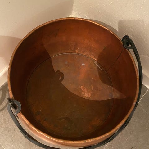 Kobber vedkjele med Hammret Mønster og Håndtak