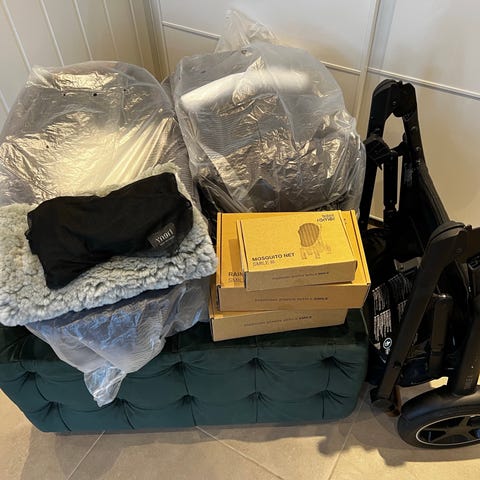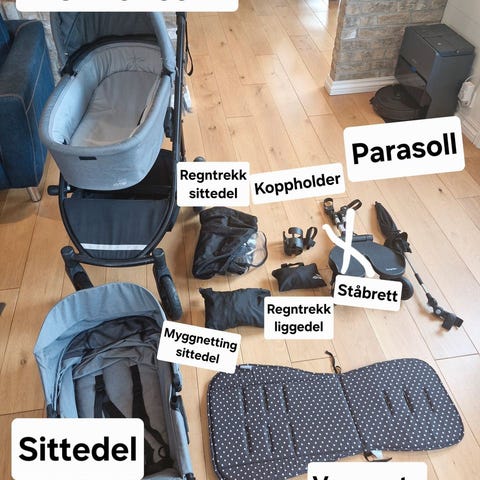 Alt er pent brukt og har vært oppbevart innendørs. Normal bruksslitasje og trekket på sportsdelen er noe falmet, men ingen kjente feil.