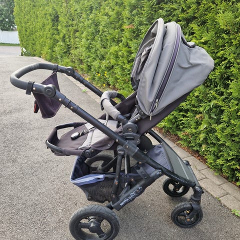 Vognen er enkel å manøvrere, stabil og komfortabel for barnet. Praktisk løsning med bilstol på vogn, perfekt for korte turer og hverdagsbruk.