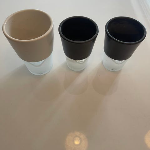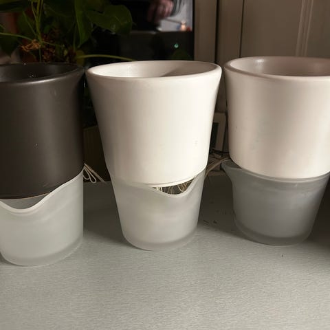 Har to selvvannende potter fra Eva Solo som ikke lenger blir brukt. Den tredje som følger med har sprekk i glasset, og kan være interessant dersom du har en ødelagt overdel?