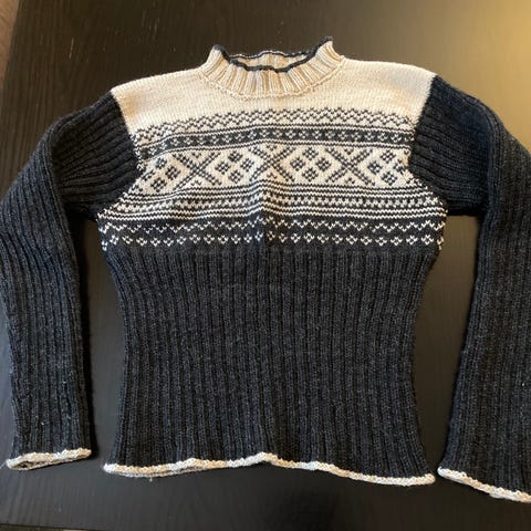 Meget pent brukt Mariusgenser. Hjemmestrikket i ull. Litt usikker på størrelsen, men tipper medium/large.