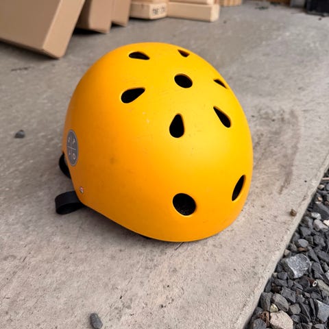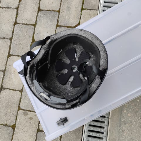 Core sykkelhjelm i hvit farge. Hjelmen har ventilasjonsåpninger og justerbar hakestropp. Egnet for bruk ved sykling for å beskytte hodet.